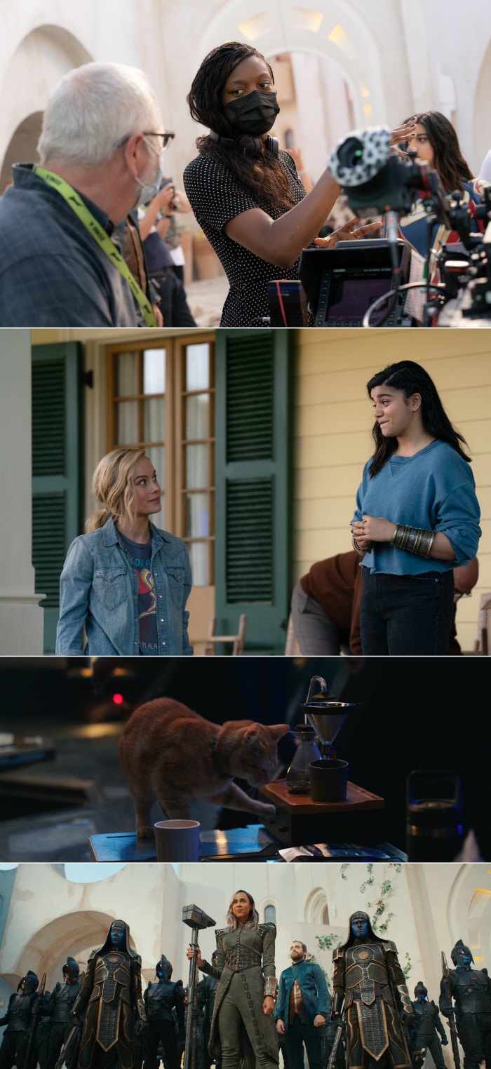 또한 전작 '캡틴 마블'에 나왔던 마리아 램보(러샤나 린치 )의 집과 디즈니+ 드라마 '미즈 마블'의 주 배경이 된 카말라 칸(이만 벨라니) 가족의 집은 이전의 비주얼과 완전히 똑같이 지어졌으며, 이번에 새로 등장하는 캐럴 댄버스(브리 라슨)의 우주선, 세이버 우주 정거장, 얀 왕자(박서준)가 사는 축제 분위기의 화려한 알라드나 행성까지 생동감 있게 구현되었다.