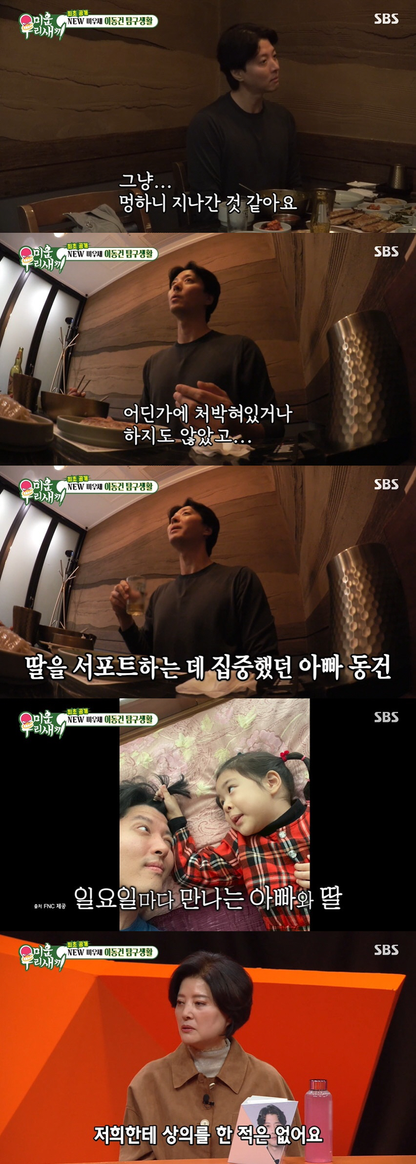 이혼한지 3년, 이동건은 이후 공백에 대해서는 "기억이 안 난다. 그냥 멍하니 지나간 거 같다. 일을 너무 많이 하지도 않았고 일을 못할 정도로 어딘가에 처박혀있지도 않았다"고 밝혔다.