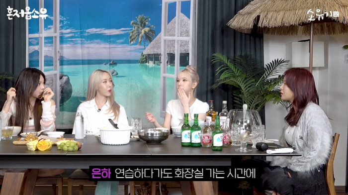 은하는 "연습하다가도 화장실 가는 시간에 작은 빵 사서 화장실 가서 먹었다"고 털어놨다. 이에 소유도 "다 화장실인가보다. 우리도 유명한 일화가 있다"면서 "씨스타 연습생 때 미니 약과에 빠졌다. 화장실에서 먹고 있었는데 이사님이 들어오셨다"고 떠올렸다. 그는 "나랑 다솜이는 그대로 얼음이 됐다"며 "씨스타도 데뷔 초에는 말랐다. 그러다가 어느 순간 갑자기 운동을 하기 시작하면서부터 건강미 이렇게 자리를 잡았다"고 밝혔다.