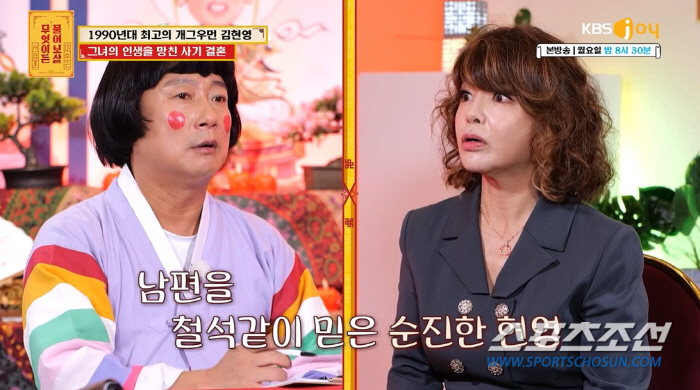 6일 방송된 KBS Joy '무엇이든 물어보살'에는 1990년대를 풍미했던 코미디언 김현영이 오랜만에 모습을 드러냈다.
