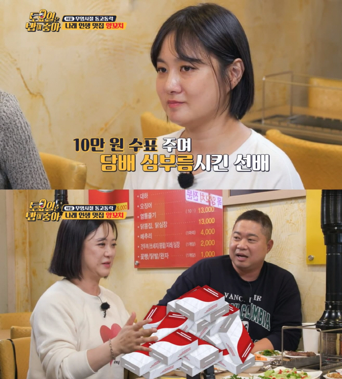 이어 김숙은 "좀 얄미운 선배가 있었다. 10만 원 수표를 주면서 담배 심부름을 시켰다. 주위 인원을 쓱 보고는 100갑을 사 갔다. 그땐 담배가 1,000원이었다"라고 말해 현장을 초토화시켰다. 김숙의 후배 박나래는 "당시 KBS의 레전드였다"라며 후일담을 전했다.