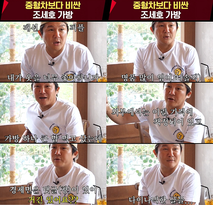 영상 속 조세호는 "어쩔 수 없는 게 내가 옷을 너무 좋아하니까 난 어디가더라도 가장 예쁜 옷, 좋은 옷, 명품 많이 입는다"고 솔직하게 밝혔다. 이에 제작진은 "맨날 가방 들고 다니는 게 화제가 된다"고 하자, 조세호는 "얼마 전에도 가방 하나 큰 맘 먹고 샀는데 경제면에 나왔더라"고 밝혔다. 그는 "조세호라는 사람이 쓰는 가방이 외부에서는 이런 가격에 책정되어 있다는 정보를 알려줬다"며 "연예면은 댓글이 없지 않나. 경제면은 댓글이 있다. 오랜만에 다이나믹한 글들 잘 읽었다"며 웃었다.