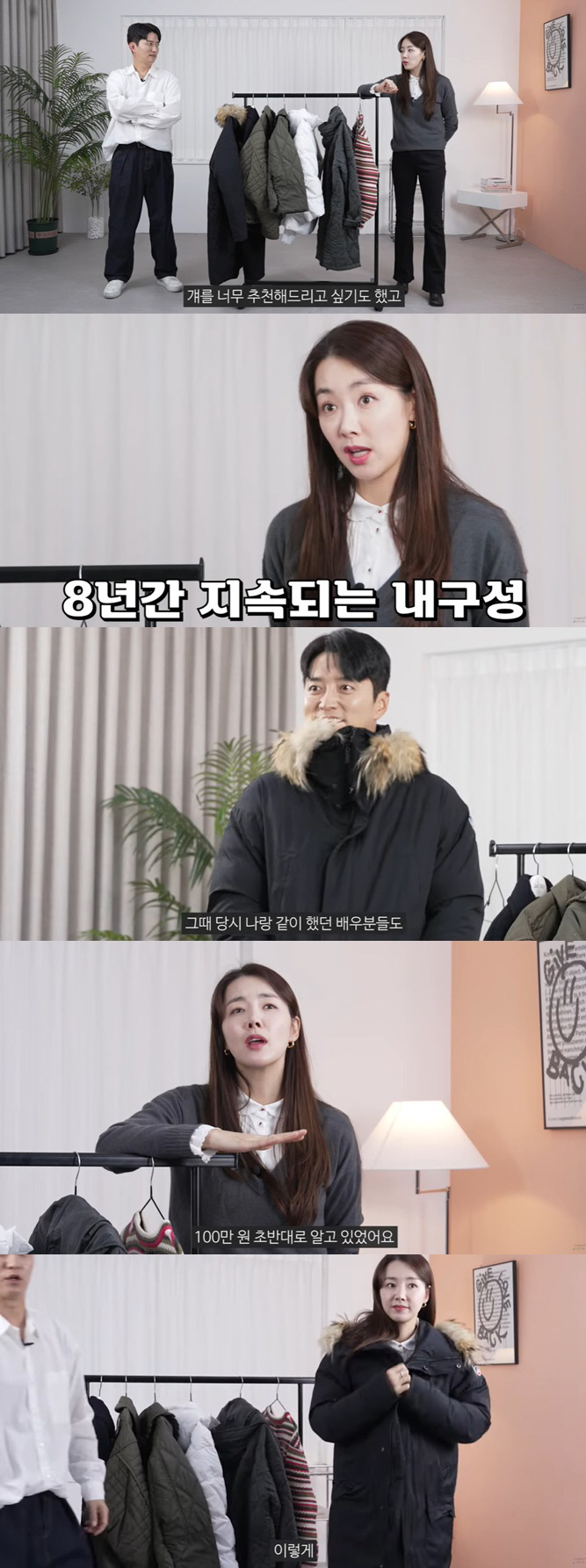 인교진은 직접 아우터를 입어보며 "해질 정도로 많이 입었다. 촬영장에서도 입고 스키장 갈 때도 입는다. 앞으로도 10년은 더 입을 것 같다"고 설명했다. 소이현은 "스키복 브랜드 제품이라 한파에 강하다. 나랑 같이 촬영했던 배우분들도 '이게 뭐야?'라면서 따라 샀다"고 전했다.