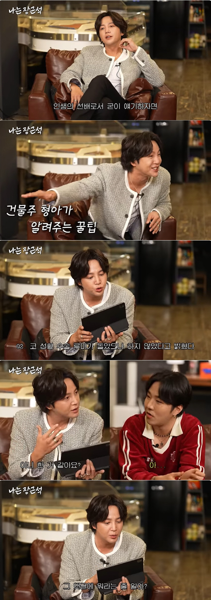 장근석은 비오 역시 코 성형수술 루머가 있었다는 이야기에 "나랑 공통점이 있다"고 반가워했다. 비오는 "제가 디스전 때 상대방이 저를 디스하는 가사에 코 실리콘을 빼라더라. 안 했는데 그런 말을 해서 기정사실화 됐다"고 황당해했다. 장근석은 "나도 비오 나이 때 코 수술을 그렇게 많이 했다더라. 한 거 같아 보이냐. 안 했다"며 "댓글에 성형외과 가서 장근석이 코 했는지 안 했는지를 찍어보라더라"라고 어이없어했다.