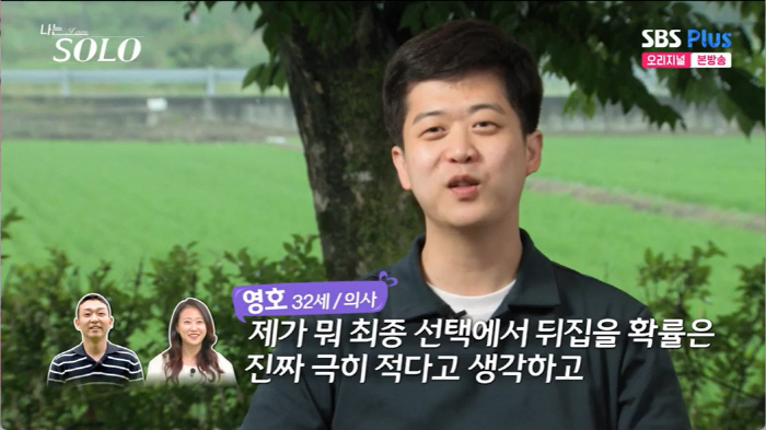 영호는 "(마음을) 상철님과 비교해서 꺼내 보여줄 수 있으면 내가 더 클 거다. 내 가치관을 깰 정도였으니까"라 했고 "선택을 안할 거라는 말이면 난 듣기 싫겠지"라는 영호의 말에 현숙은 난감해졌다.