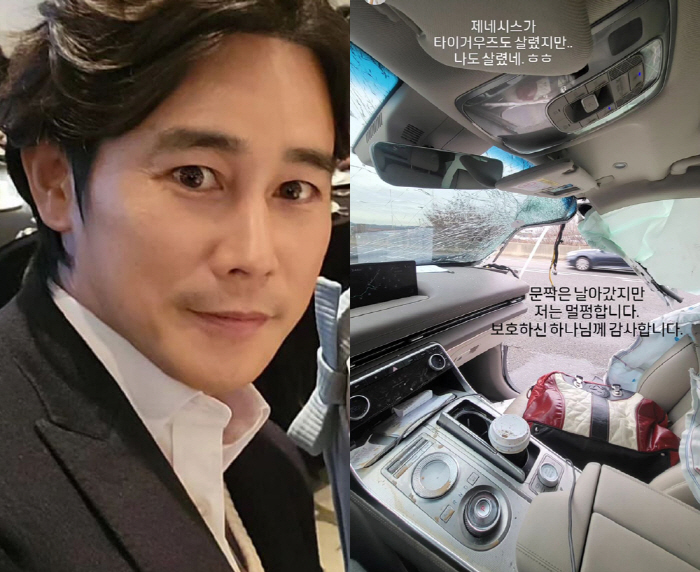 [스포츠조선닷컴 박아람 기자] 배우 정태우가 교통사고로 심각하게 파손된 차량 사진을 공개했다.