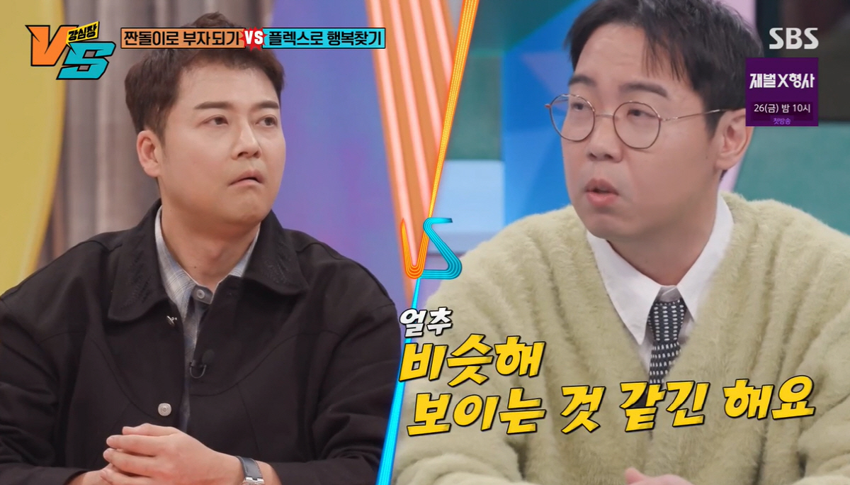 9일 방송한 SBS '강심장VS'에서는 '짠돌이로 부자되기VS플렉스로 행복찾기'로 꾸며졌다. '플렉스'팀에는 배우 박준금, 황현희, 래퍼 언에듀케이티드 키드가 출연하고 '짠돌이' 측에는 배우 고은아, 개그맨 김용명이 착석했다.