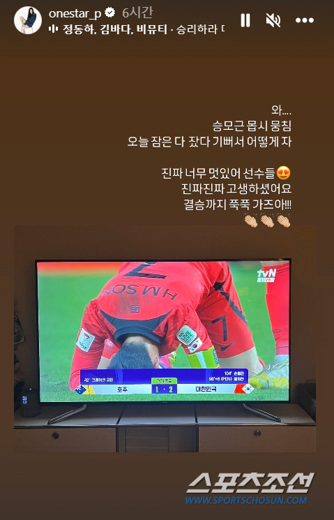 유선은 인스타그램 스토리에 "역전의 용사들, 기적의 대한민국, 감사합니다"라는 글을 올렸고, 박한별은 "승모근 몹시 뭉침. 오늘 잠은 다 잤다 기뻐서 어떻게 자"라며 승리의 기쁨을 함께 했다.