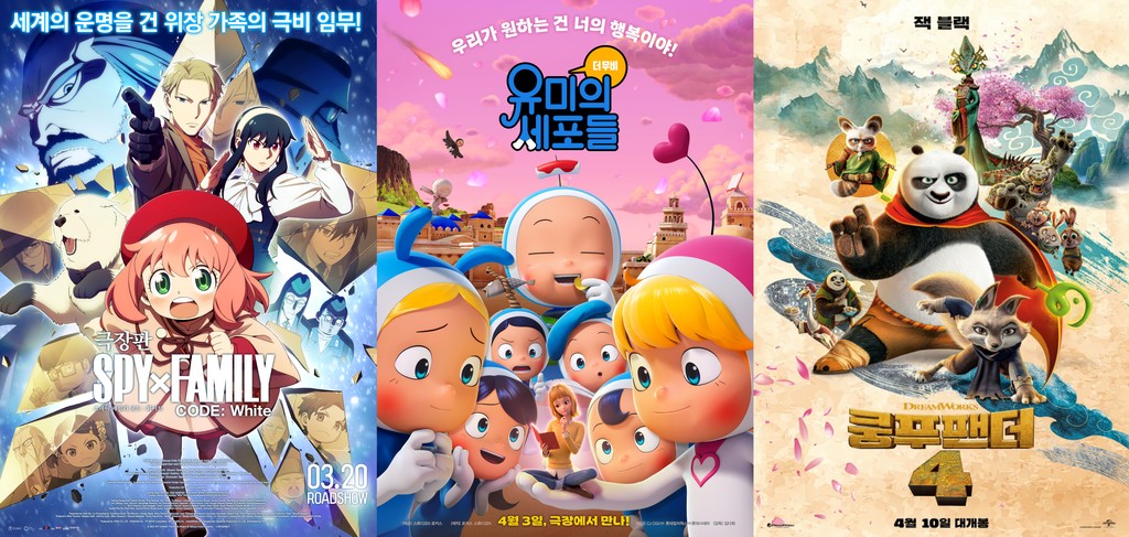 한편, 영화‘극장판 스파이 패밀리 코드 : 화이트’는 오는 20일,‘유미의 세포들 더 무비’는 4월 3일,‘쿵푸팬더4’는 4월 10일 각각 개봉한다.
