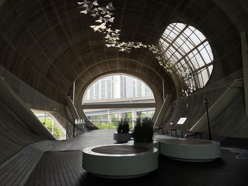 (서울=연합뉴스) 고은지 기자 = 서울시는 한강의 역사·문화 이야기를 총망라한 '한강 이야기 전시관'이 광진구 뚝섬한강공원 대표 쉼터인 '뚝섬 자벌레' 내부에 문을 열었다고 18일 밝혔다.