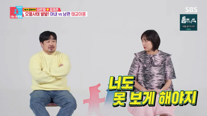 이은형은 "그런걸 못 보게 하려면 너도 못보게 해야지"라며 강재준의 외모를 지적해 웃음을 자아냈다.