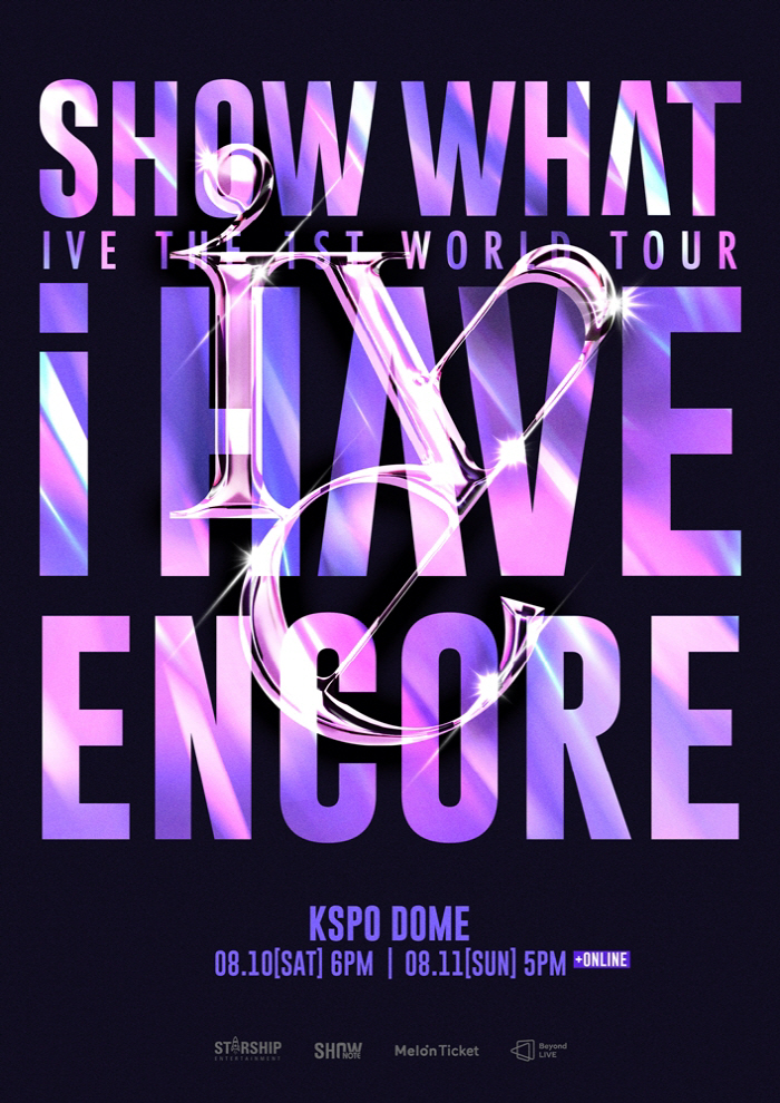 아이브는 열띤 국내 팬들의 성원에 보답하고자 월드 투어 '쇼 왓 아이 해브' 앙코르 공연을 서울 KSPO DOME에서 이틀간 개최하며 더욱 커진 스케일로 특별한 성장사에 방점을 찍는다. 또한 공연을 찾지 못하는 팬들을 위해 11일 공연은 글로벌 플랫폼 '비욘드 라이브(Beyond LIVE)'에서 온라인 생중계를 진행해 글로벌 팬들과도 함께한다.