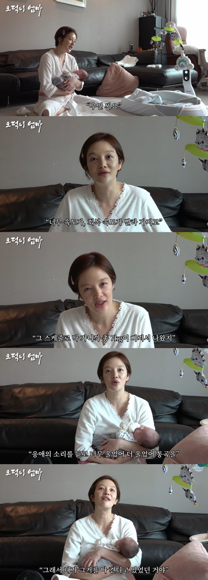 황보라는 아들을 보며 "나랑 똑같이 생겼다"라면서 이름은 우인이라고 소개했다. 이어 "원래 5박 6일 동안 입원하는데 저는 회복 속도가 빨라 하루 일찍 퇴원했다. 산모들 중 제 나이가 제일 많았는데 선생님이 평소에 관리를 너무 잘했다며 놀랐다. 조리원에서 하루에 마사지 2번, 도수치료를 받았다. 그 스케줄을 소화하며 2주 만에 총 7kg를 뺐고 집에 와서 1kg를 빼서 (빼야할 몸무게가) 1kg이 남았다"라며 산전 조리의 중요성을 강조했다.