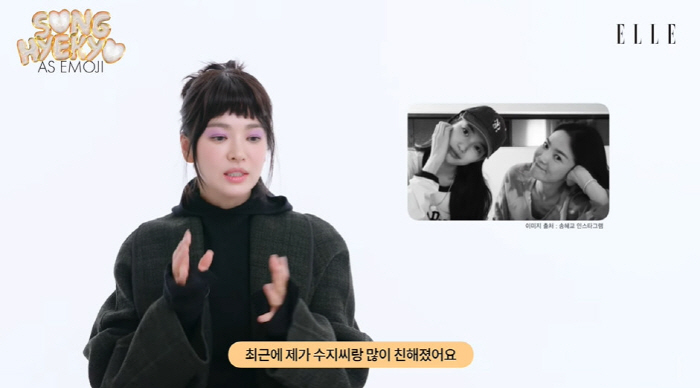 또한 송혜교는 수지와 친해진 계기도 언급했다. 송혜교는 '최근 TMI'를 묻는 질문에 "최근에 수지 씨와 많이 친해졌다. '청룡시리즈어워즈' 핸드프린팅 행사 끝나고 우리집 가서 같이 시간을 보내기도 했다"며 "이번에도 '청룡 시리즈 어워즈' 시상이 있었다. 그날도 끝나고 만났다. 둘이서 수다 떨고 좀 이야기 하고 헤어졌다"며 웃었다.