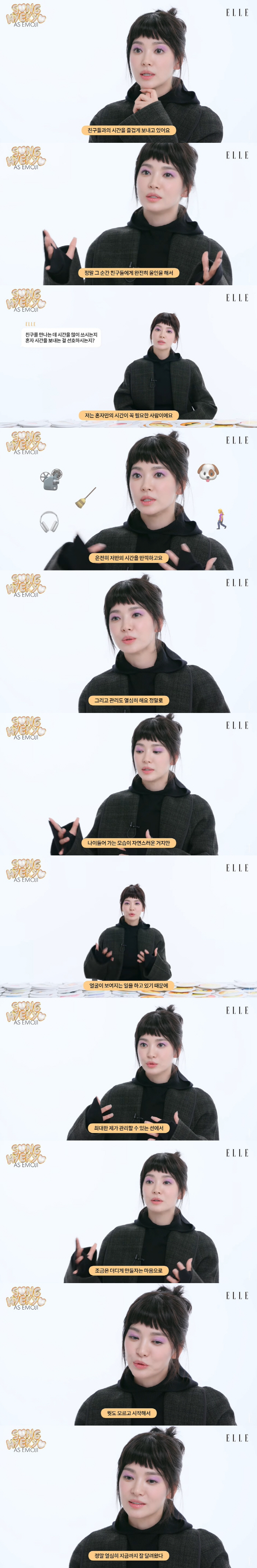 송혜교는 '데뷔 초 나에게 하고 싶은 말'에 대해 "뭣도 모르고 시작해서 정말 열심히 지금까지 잘 달려왔다. 수고했다"고 했다. 그러면서 '20년 뒤 나에게 하고 싶은 말'이라는 질문에는 "일을 계속 하고 있다고 생각했을 때 '아직까지 일하고 있다고? 너 정말 수고 많았다. 이제 좀 쉬렴'이라고 하고 싶다"며 "열심히 하고 싶은데 또 어떤 상황이 올지 모르니까"라고 했다.