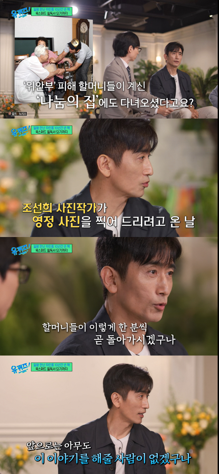 위안부 피해 할머니들이 계신 '나눔의 집'에 종종 찾아가서 봉사활동을 했다고 밝힌 차인표는 "조선희 사진작가가 영정 사진을 찍어드리려고 자원 봉사 온 날이었다. 그 모습을 옆에서 지켜보는데 '한 분씩 이렇게 돌아가시면, 이 이야기를 아무도 해줄 사람이 없겠구나. 다음 세대에는 누가 이야기 해주지? 그런 생각이 들면서, 할머니들이 사과를 못 받으셨더라도 책에서라도 마음을 편하게 하고 싶었다"라고 밝혀 뭉클함을 자아냈다.