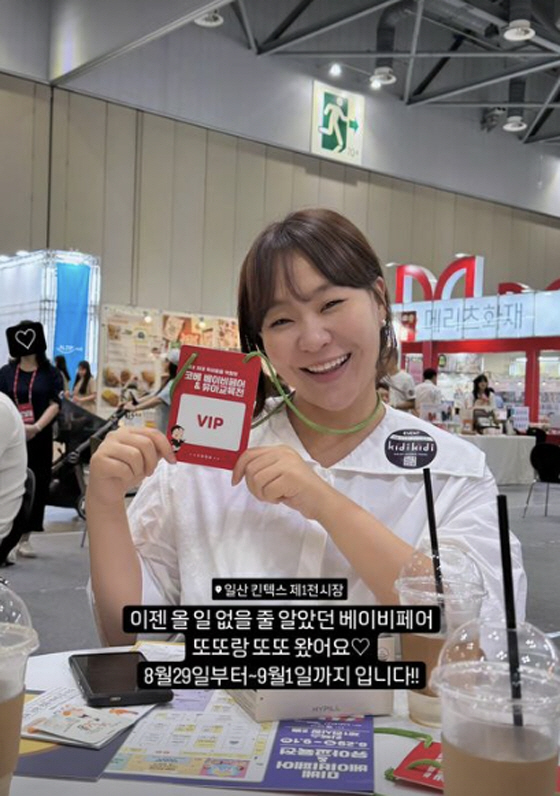 "이젠 올 일 없을 줄 알았다"며 웃는 정주리. 곧 다섯 아이의 엄마가 되는 만큼 베이비페어의 'VIP'였다. 이에 'VIP'라고 적힌 목걸이를 차고 환한 미소를 짓고 있는 정주리다.