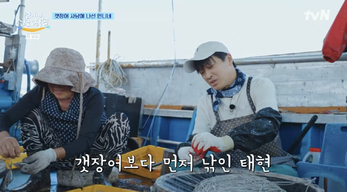 그때 차태현은 "오래 안 걸리냐"며 갯장어 조업 시간을 묻고는 "(염정아가)컨디션이 진짜 안 좋아보인다"고 했다. 어제 저녁 시간, 염정아는 먼저 자리에서 일어나 휴식을 취했다. 온 힘을 쏟아 부은 옥수수 수확에 저녁 요리까지 하느라 지쳤던 것. 그리고 그런 염정아가 신경 쓰였던 차태현은 "선배님이 일을 빠지는 걸로"라며 조업을 함께하기로 했다.