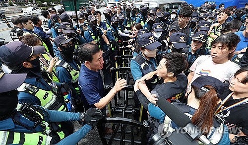 또 집회 신고 구역인 3개 차로 안에 경찰 버스와 순찰차, 경찰 안전 펜스 등이 설치되자 대구퀴어문화축제 조직위 측이 반발했다.