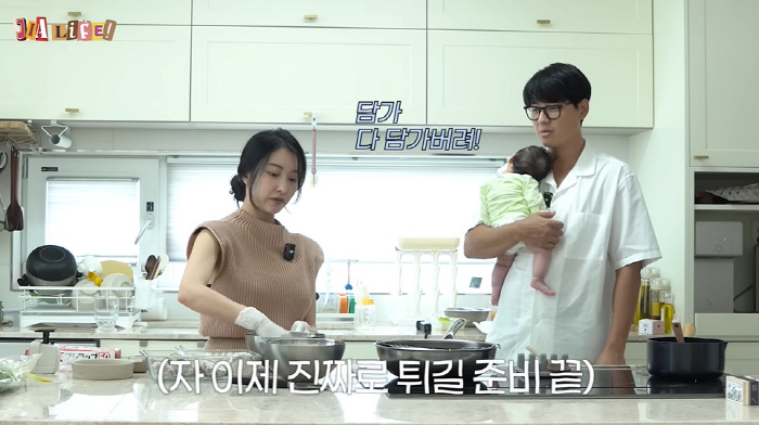 이날 아야네는 당고와 채소 튀김을 준비, 이지훈은 옆에서 아내를 도왔다. 그때 잠에서 깬 딸 루희가 칭얼거리자, 이지훈이 루희를 안고 주방으로 향했다.