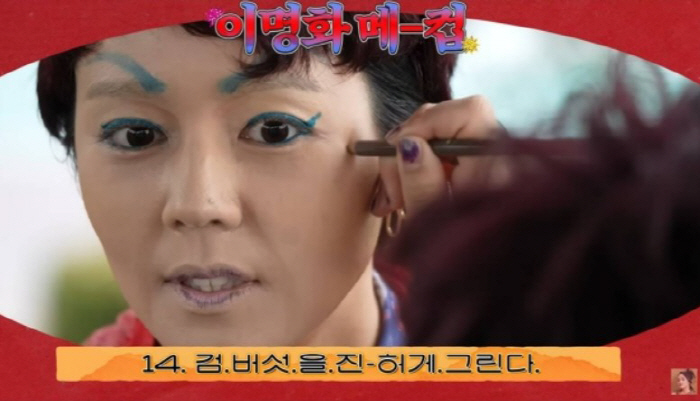 영상에서는 한가인이 랄랄의 부캐인 '이명화' 메이크업을 받으며 색다른 모습을 선보였다. 랄랄은 한가인의 깨끗한 피부를 일부러 검버섯과 팔자주름 메이크업으로 덮으며 재미를 더했다. 가발까지 착용하자 이명화 캐릭터에 가까워졌지만 또렷한 눈매를 감출 수는 없었다. 랄랄은 이에 선글라스를 추천하며 "이제야 완성된 느낌"이라며 웃었다.