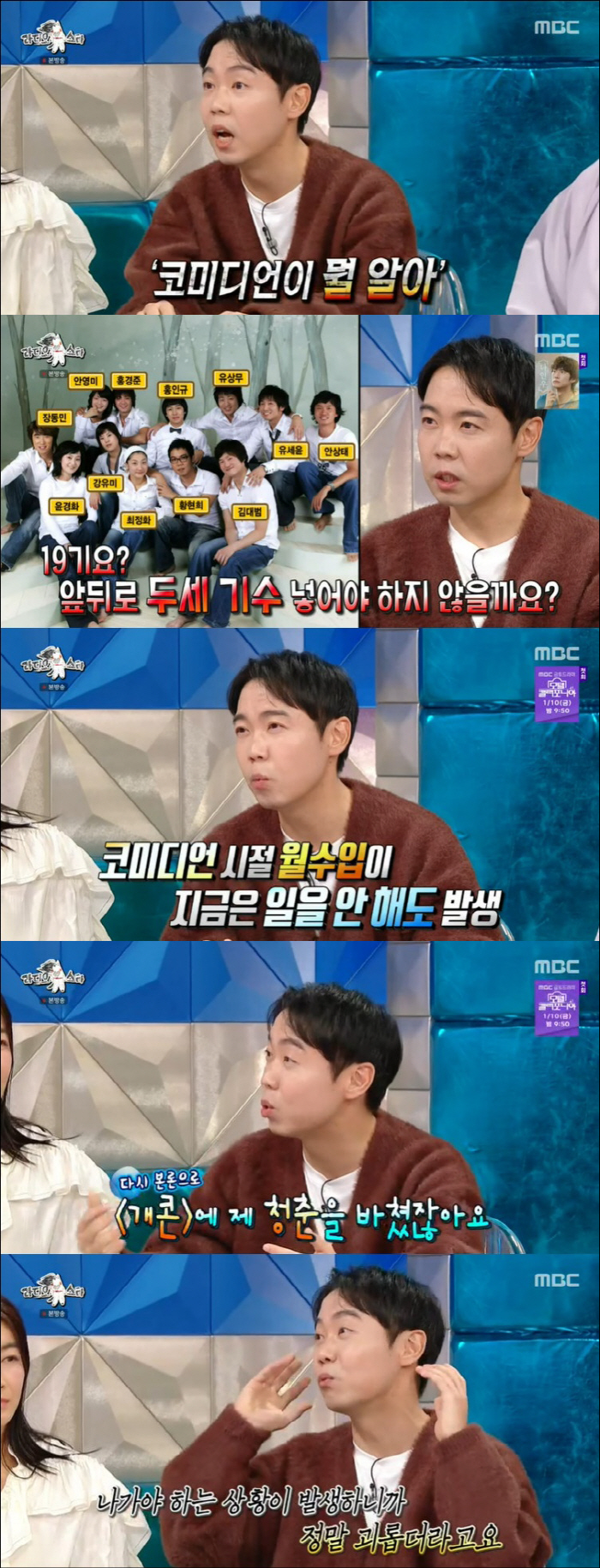 KBS 공채 개그맨 19기 중 제일 부자라는 황현희. "이를 인정하냐"는 질문에 황현희는 "앞뒤로 두세 기수 정도 더 넣어야 하지 않겠냐"고 자신감을 보였다.