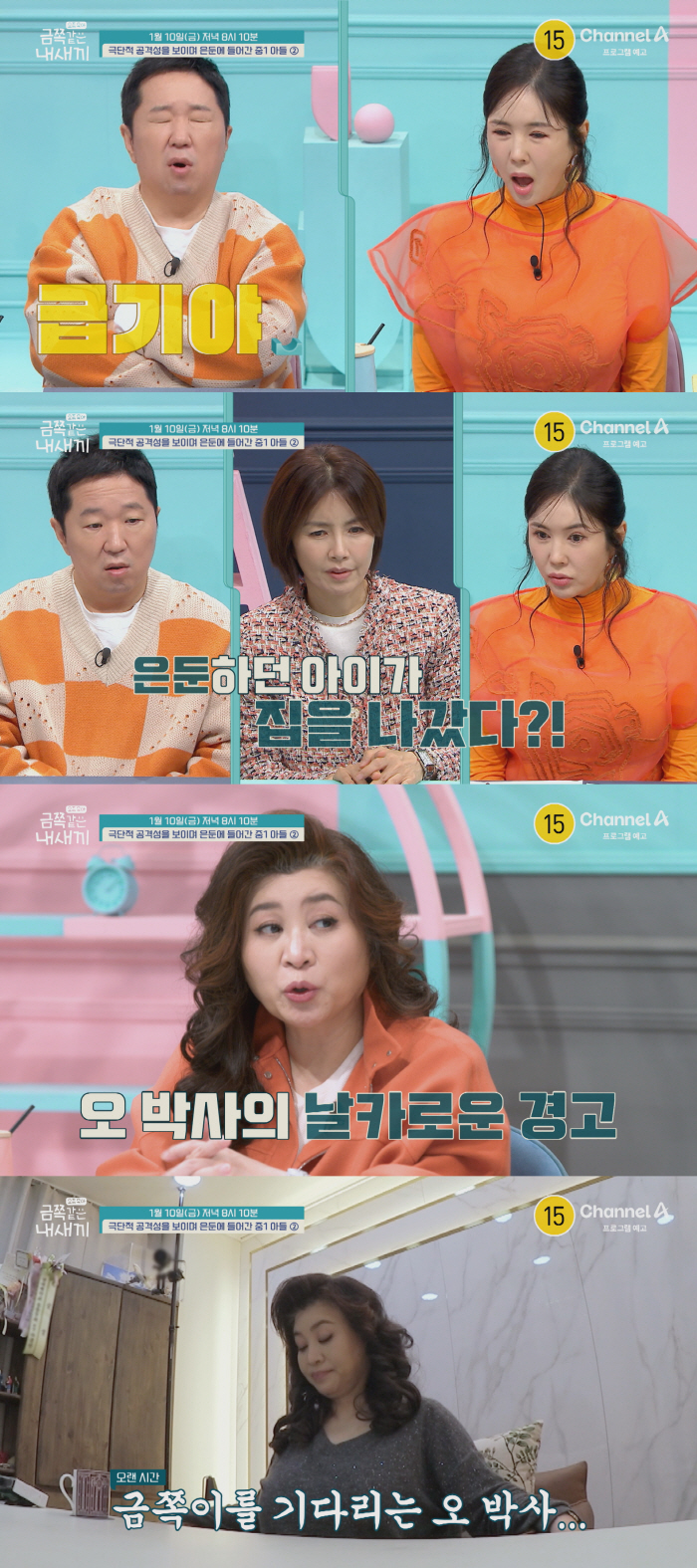 [스포츠조선닷컴 이게은기자] 채널A '요즘 육아 - 금쪽같은 내 새끼'에서는 '극단적 공격성을 보이며 은둔에 들어간 중1 아들' 그 두 번째 사연이 공개된다.