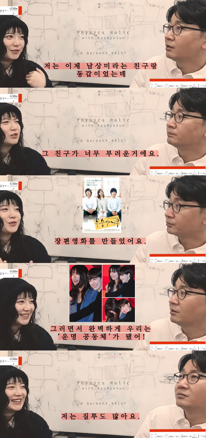 이어 "그런 것들이 내가 가진 좋은 우두머리 기질이다. 난 질투도 많지만, 질투하는 상대랑 꼭 같이 일한다. 조별과제할 때도 반에서 제일 잘해서 내가 너무 질투하는 사람이랑 매달려서 꼭 같이한다. 그리고 배우고 나도 준다"고 밝혔다.