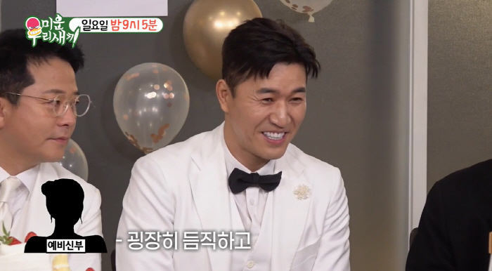 예고편에는 화이트 턱시도를 입은 김종민이 가운데 자리한 가운데 '미우새' 멤버들이 둘러싸고 예비신부와 통화를 하는 모습이 담겼다.