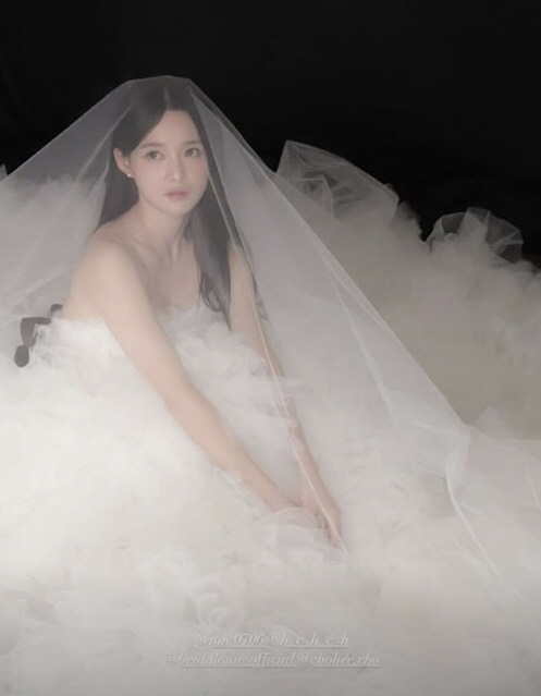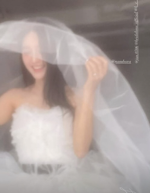 사진 속 남보라는 순백의 웨딩드레스를 입고 포즈를 취하고 있는 모습. 부케를 들고 면사포까지 곱게 쓴 남보라는 그 어느때보다 우아한 미모를 뽐내 감탄을 자아낸다. 특히 시스루 웨딩드레스를 입고 잘록한 허리라인을 드러내 시선을 모은다.