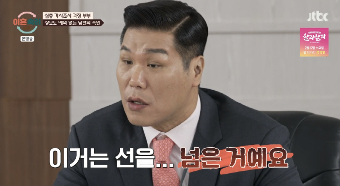 남편이 아내에게 폭언을 하고 폭력적인 행동을 한 정황이 담긴 홈캠 영상도 공개됐다. 또 아내가 작가에게 "저 남편에게 맞았다. 핸드폰을 뺏어 광대뼈를 내리찍었다. 이러다 칼부림 날 것 같다"라고 보낸 문자도 공개됐다. 남편은 "아내가 종이에 제 욕을 써서 종이를 태우려고 한 것"이라고 해명했다.