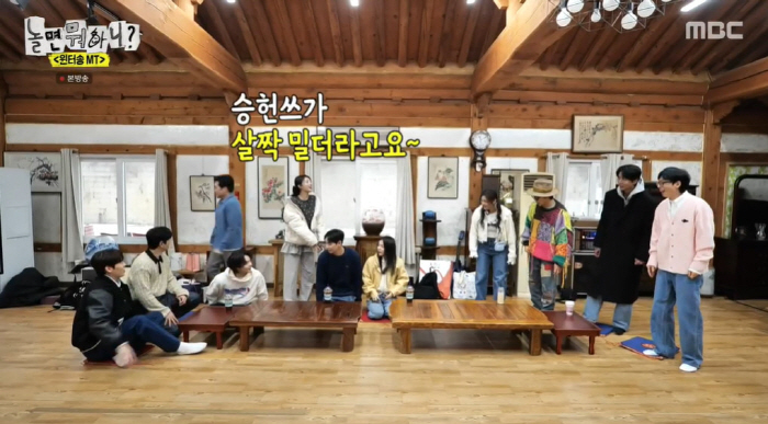 이를 확인한 유재석은 이미주에게 "교묘하게 건희 옆으로 간 거 아니냐"며 했고, 이미주는 "승헌쓰가 살짝 밀더라"며 웃었다. 이어 이미주는 뜻밖의 횡재에 승헌쓰를 향해 "고맙다고 이야기 하고 싶었다"고 해 눈길을 끌었다.