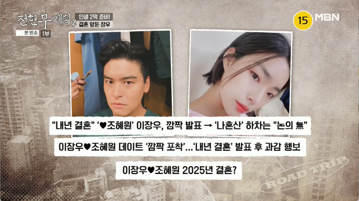 현재 배우 조혜원과 공개열애 중인 이장우는 "올해 연말쯤에 해야하지 않을까 싶다. 가을쯤?"이라 답했다. 곽준빈은 "오자마자 기자회견이다"라고 분위기를 풀었다.