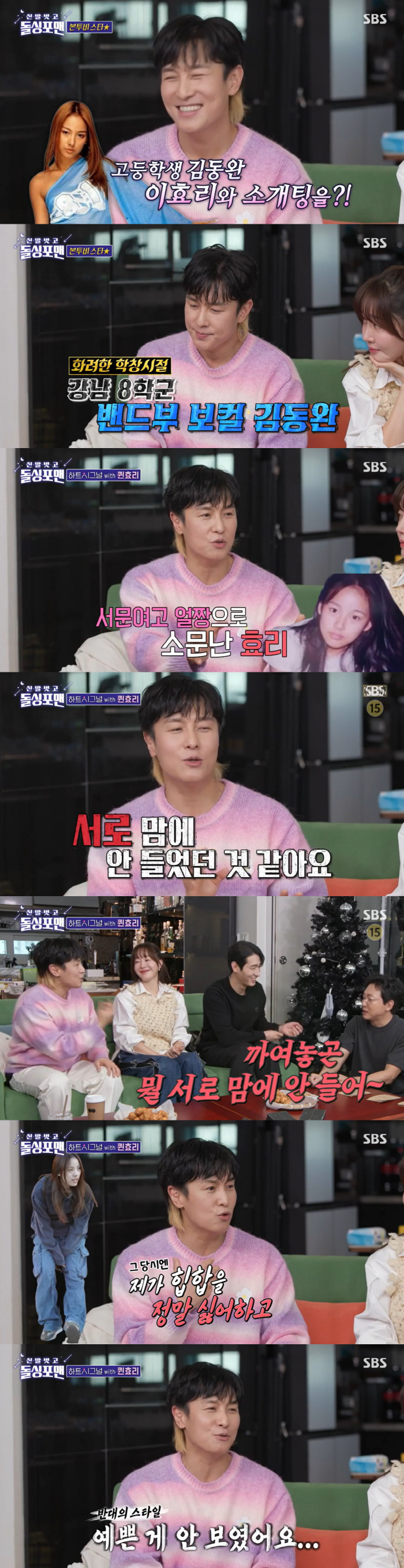이에 김동완은 "저는 밴드한다고 하얀 바지를 입었는데, 효리는 힙한 바지를 입었다. 근데 제가 힙합을 진짜 싫어하고 강북 스타일을 좋아했다. 바짓단 딱 붙고 머리 딱 자르는 그런 스타일"이라며 "근데 효리는 안 그러니까 예쁜 게 안 보이더라"라고 설명했다.