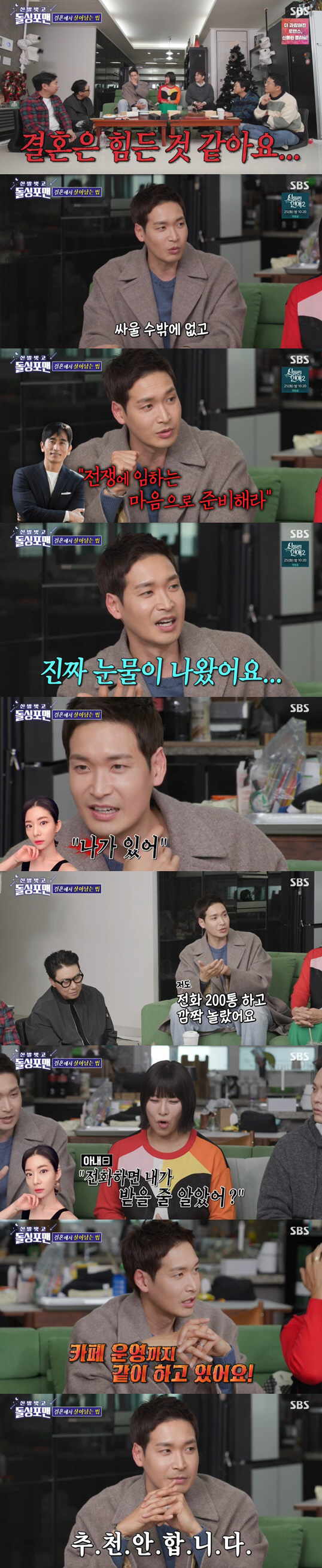 특히 정겨운은 화난 아내에게 전화 200통을 한 적도 있다고. 그는 "신혼 초에 정말 몰랐을 때 그렇게 했다. 전화 200통을 하고 저도 깜짝 놀랐다. 아내가 '전화하면 내가 받을 줄 알았어?'라고 하더라. 다음에 싸우고 나서는 제가 전화를 안했다. 그랬더니 이번에는 전화를 안 했다고 뭐라고 하더라. 부부싸움에 정답은 없다"라고 부부싸움 일화를 전했다.
