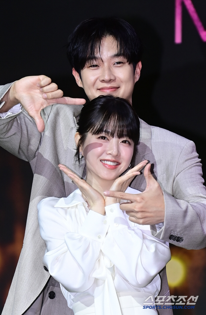 12일 JW 메리어트 동대문 스퀘어 서울에서 열린 넷플릭스 오리지널 시리즈 '멜로무비'의 제작발표회, 최우식과 박보영이 포토타임을 갖고 있다. 허상욱 기자 wook@sportschosun.com/2025.02.12/