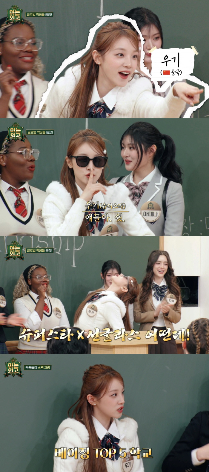 이어 같은 중국 출신인 제로베이스원의 장하오가 "한국에서 활동하는 중국인 아이돌 톡방이 있다. 방장이 우기다"고 하자 "역시 우기"라는 현장 반응이 쏟아졌다. 이후 우기는 "제가 중학교 때 다녔던 학교는 베이징에서 최고 다섯 학교 중 하나였다. 학교에서 전교 7등을 한 적이 있다"고 말해 감탄을 자아냈다.