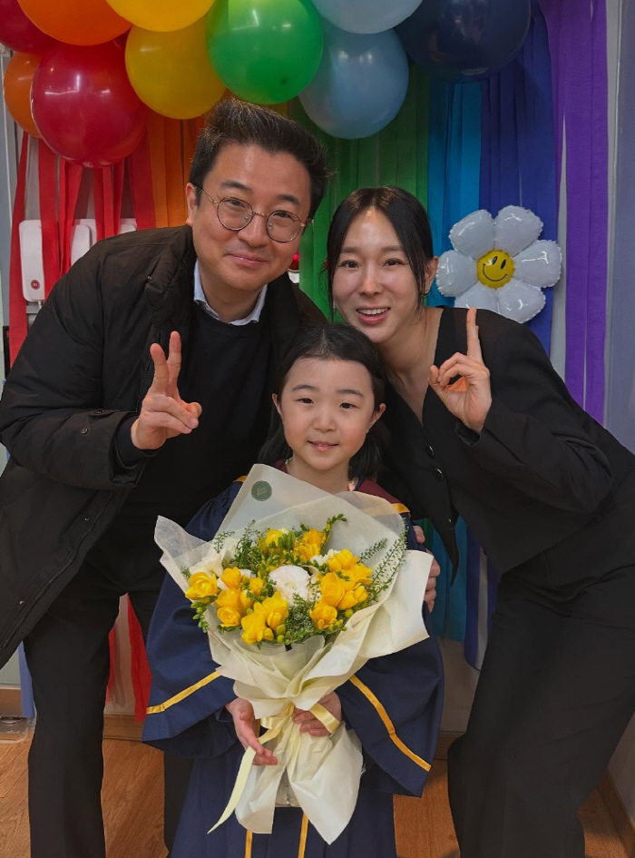 학사모를 쓴 태리 양은 엄마 아빠가 준비한 꽃다발을 들고, 환하게 웃고 있는 모습. 어느새 훌쩍 자란 태리 양의 폭풍성장이 흐뭇함을 자아낸다.