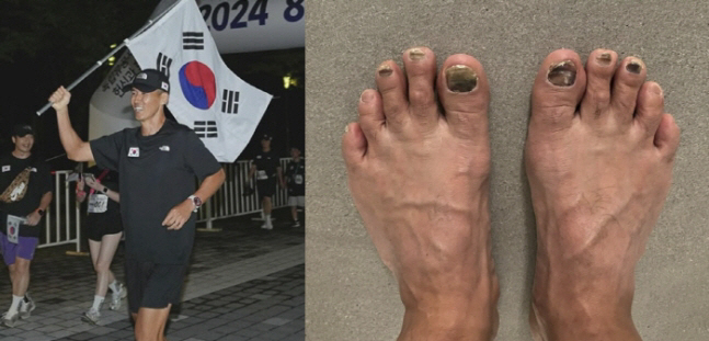 사진 속에는 '도쿄 마라톤' 완주 후의 션의 발이 담겨있다. 마라톤 도전 후 발톱이 빠지고 자랐다를 반복 중인 상황. 이에 검게 변한 발톱. 그럼에도 포기하지 않고 2025 세계7대마라톤 도전에 나선 션을 향한 박수가 쏟아졌다.