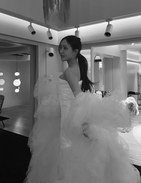효민은 드레스를 피팅 하며 우아한 자태를 뽐내 눈길을 끌었다. 화려한 메이크업과 볼드한 쥬얼리를 매치, 더욱 완벽해진 비주얼을 자랑하기도 했다. 단아하면서도 화사한 분위기가 신부의 설렘을 극대화했다.