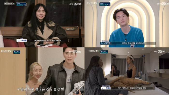 지난 19일 방송된 Mnet '커플팰리스2(연출 이선영 CP, 정민석 PD)' 7회에서는 팰리스위크 입소 후 감정이 깊어지는 싱글남녀들의 이야기가 그려졌다. 뒤엉킨 러브라인으로 점점 과열되는 '싱글존'과 평화로운 줄만 알았던 '커플존'의 반전이 시청자들의 몰입을 상승시켰다.