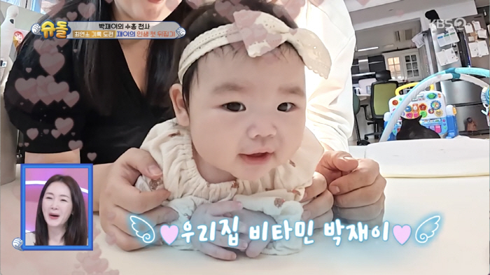 재이는 엄마 아빠의 응원 속에 뒤집기에 성공해 박수를 받았다. 최지우는 "뒤집기 천재다"라며 함께 기뻐했다. 박수홍은 "어떻게 저렇게 뒤집기도 잘하냐"라며 팔불출 면모를 보였다. 최지우는 "재이 덕분에 집안에 웃음이 가득하다"라 했다.