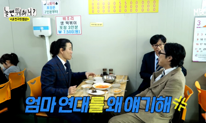 식사를 하던 중 유재석이 뒤테이블에게 말을 걸자 손님은 "아이 반장선거 결과를 기다리고 있다"고 말했다. 이에 하하는 "우리 드림이가 자꾸 2학기 때 전교회장 나가겠다고. 똘똘하긴 하다"면서 "우리 도련님(유재석 아들)이 공부를 잘한다. 엄마 닮아가지고"라면서 "엄마 연세대 나왔다. 기가 막히다. 수재다"고 말했다.