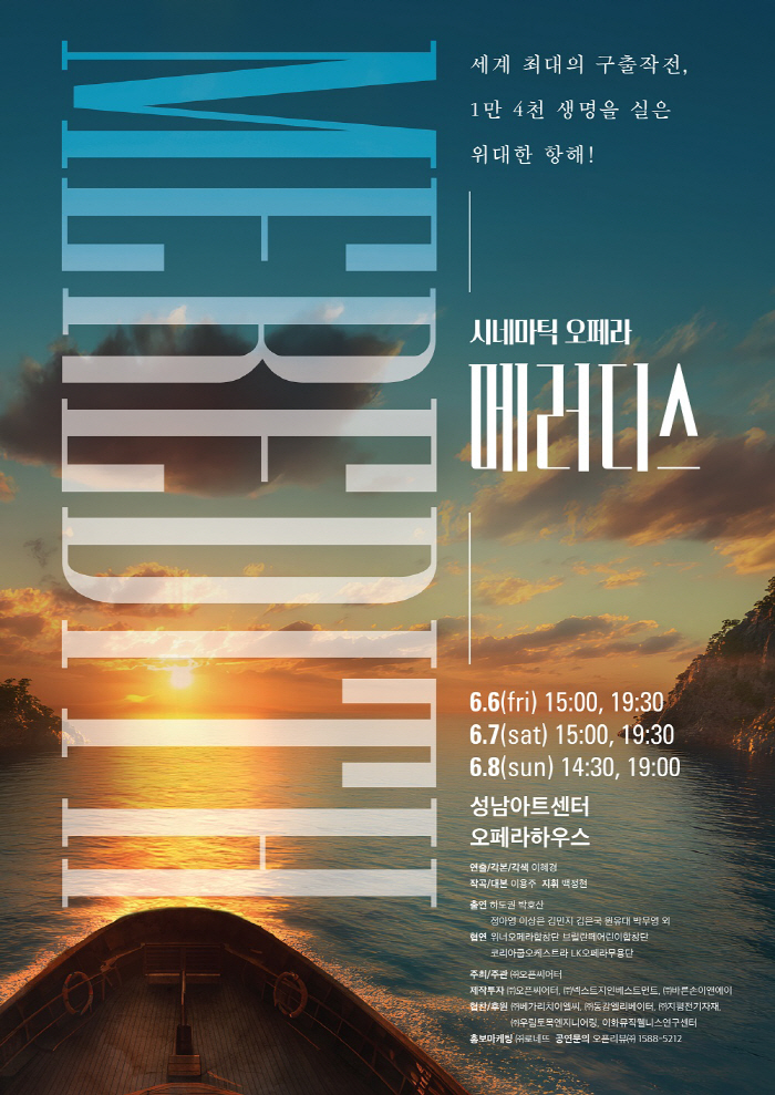 또한 '메러디스'는 '시네마틱 오페라'라는 장르명처럼 클래식 오페라의 음악성과 영화적 리얼리즘을 결합한 독창적인 무대를 선보인다. 전통적인 성악과 웅장한 오케스트라 연주에 선내 피란민들의 움직임을 실시간으로 포착한 영상 연출이 더해지며, 관객은 마치 한 편의 영화를 눈앞에서 보는 듯한 압도적인 몰입감을 경험하게 된다.