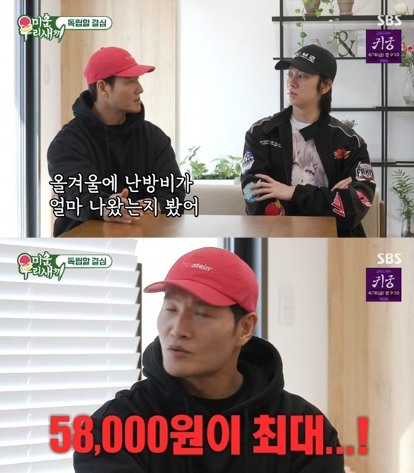 최진혁은 독립 전후로 생활비에 큰 차이가 있는지를 궁금해 했다. 자취 8년차인 김종국은 "생활비 차이가 없다. 올 겨울에 난방비가 얼마 나왔는지 봤는데 제일 많이 나온 게 5만 8000원"이라고 말했다. 이어 "올 겨울이 추워서 나름 틀었다. 너무 많이 나온 건가 싶었다"고 덧붙였다.
