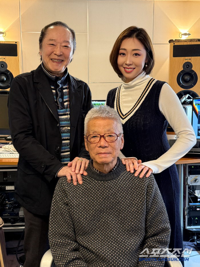 일본의 작사가 하시모토 준과 녹음실에서 다정히 포즈를 취하고 있는 가수 나비드.