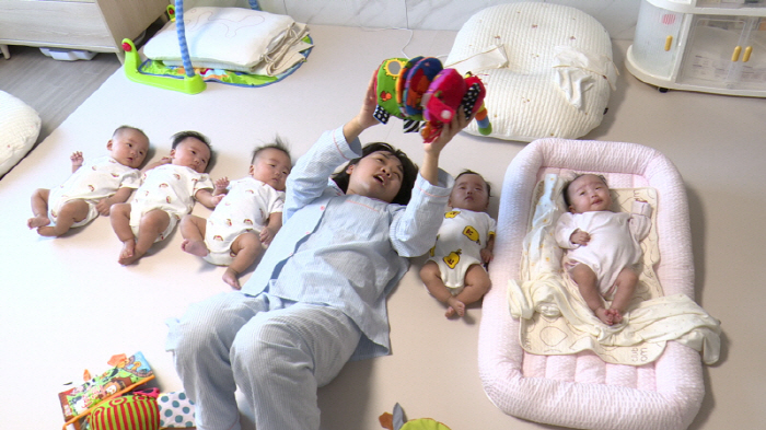 [스포츠조선닷컴 박아람 기자] 국내 최초 자연임신으로 다섯 쌍둥이를 출산하여 화제를 모은 부부가 있다. 사공혜란(31) 씨와 김준영(32) 씨가 그 주인공이다. 지난해 9월 혜란 씨는 임신 26주 6일 만에 새힘, 새찬, 새강, 새별, 새봄이를 분만했다. 1kg 미만의 초미숙아로 태어난 다섯 쌍둥이는 신생아 중환자실에서 치료를 받다가 차례로 퇴원해 6개월 지나서야 모두 집으로 돌아왔다.