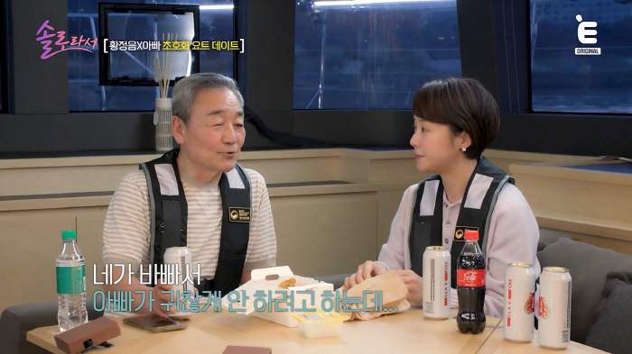 황정음은 13일 오후 방송된 SBS플러스 '솔로라서'에 출연해 제주도에서 온 아버지와 함께 지냈다.