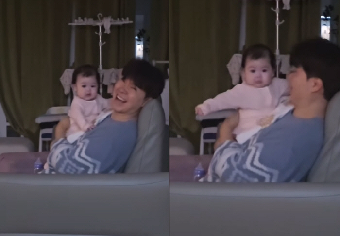 영상 속에는 신생아 시절 재이 양의 모습이 담겨있다. 아빠 품에 폭 안겨 있는 재이 양. 이때 엄마 김다예는 재이 양을 향해 "맛있게 먹었냐"고 물었고, 딸은 엄마의 말을 알아들었다는 듯 얼굴에 힘을 준 채 양 팔을 움직였다. 사랑스러움 그 자체였다.