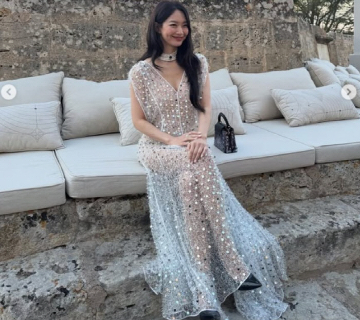 사진 속 신민아는 스페인 팔마데마요르카에서 열린 행사장에서 반짝이는 시스루 드레스를 입고 우아한 자태를 선보였다. 군살 없이 매끄러운 몸매와 고혹적인 분위기가 어우러져 현장 분위기를 압도했다.